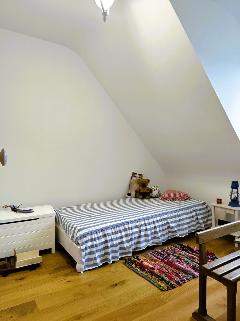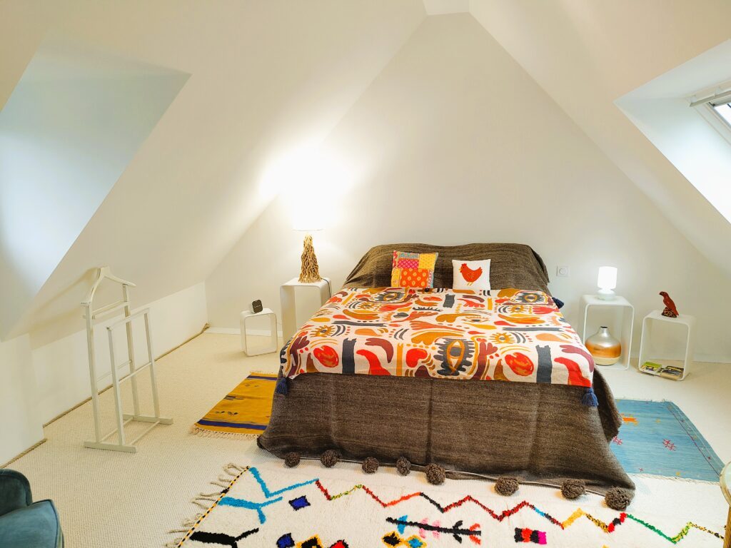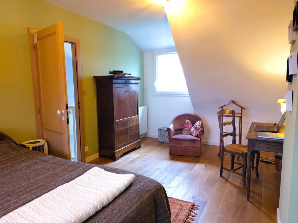 • deux grandes chambres (chacune comportant un lit en 160 cm), dont l’une avec bureau,