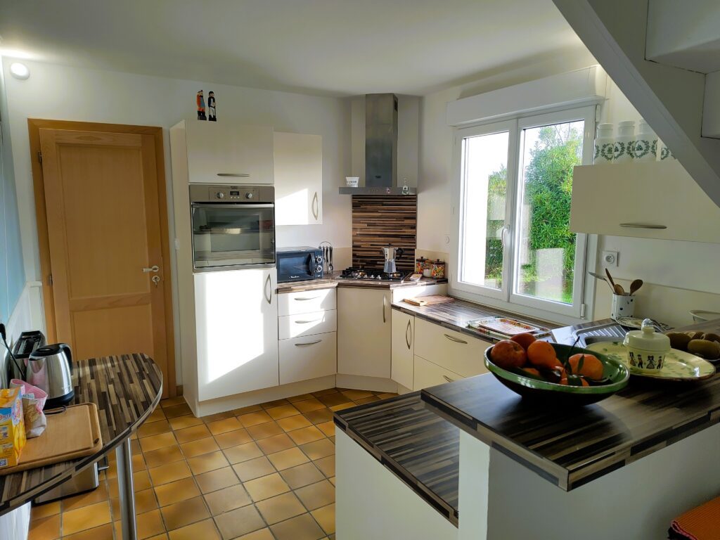• cuisine équipée avec four, frigo, micro-ondes,